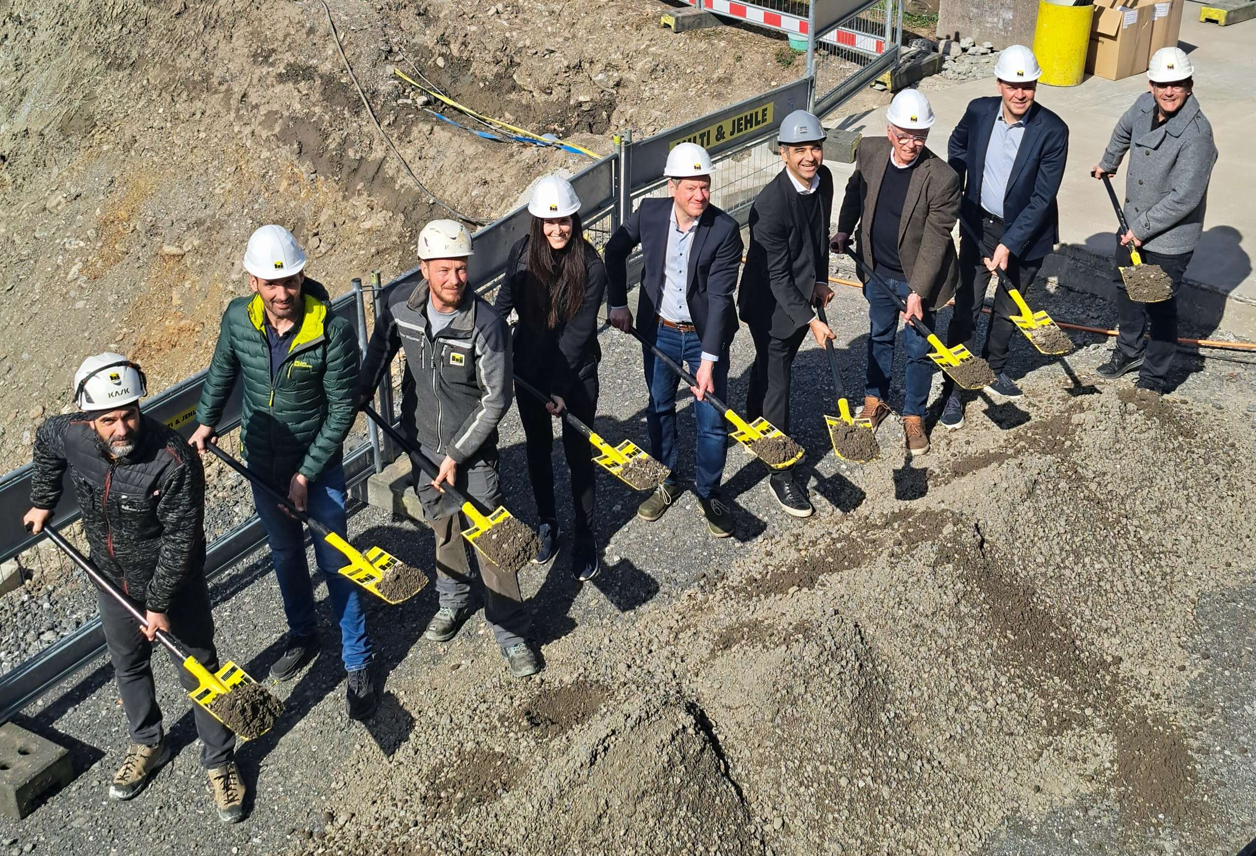 Abgebildete Personen: Mario Gassner (Hilti & Jehle GmbH), Christian Riedinger (Hilti & Jehle GmbH), Peter Wüstner (Hilti & Jehle GmbH), Anna Hilti (Hilti & Jehle GmbH), Markus Grabher, Karim Shebl (Dr. Shebl & Partner Generalplanung GmbH), Martin Rhomberg, Gerhard Bertsch, Wolfgang Lenz (Mitglied GL Hilti & Jehle GmbH)